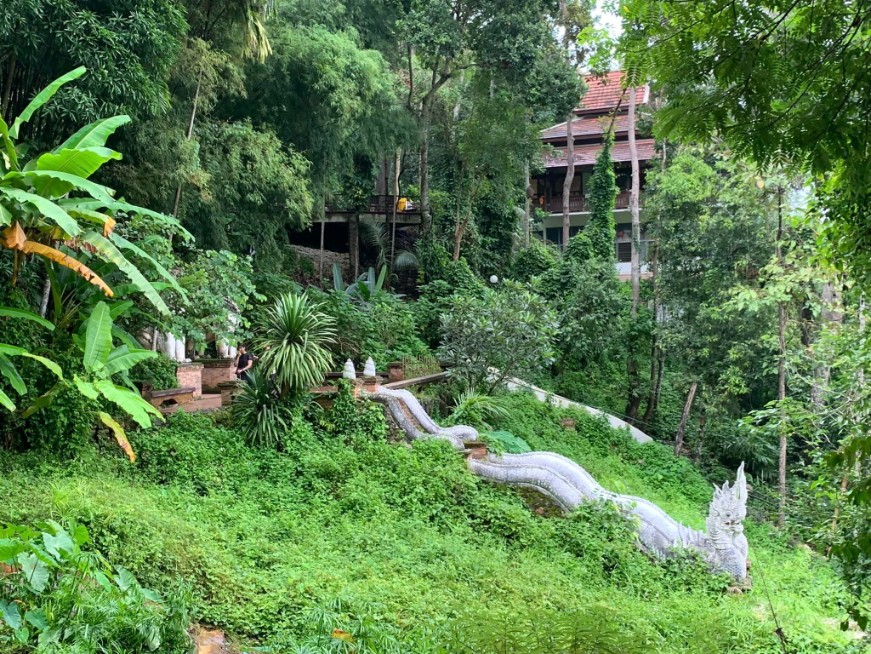 今天起了個大早,跟辦公室同事們約好早上 7:00 一起去爬 The Monk’s Trail,沿途經過隱身在樹林中的美麗寺廟 Wat Pha Lat,最後一路走到終點素帖寺(雙龍寺Wat Phra That Doi Suthep),總長共約 7.2 km。